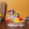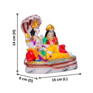 Bring divine blessings into your home with this intricately crafted Lord Vishnu and Goddess Lakshmi idol, seated gracefully on Sheshnag. This beautifully hand-painted polyresin figurine captures the serenity and grandeur of the divine couple, symbolizing prosperity, protection, and spiritual harmony. Perfect for home decor, temple altars, and gifting, this idol adds a sacred touch to any space.