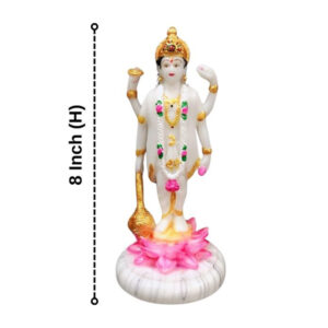 The Lord Vishnu idol from GW Creations is a magnificent embodiment of peace, balance, and divine protection, expertly crafted from high-quality marble. Standing at 8 inches tall, this exquisite piece is perfect for both home and office settings, offering a serene and inspiring presence. The idol’s intricate detailing and polished finish reflect talented artisans’ exceptional skill and dedication, ensuring it serves as a cherished centerpiece in any environment.