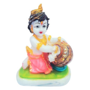This charming showpiece not only enhances your décor with its artistic beauty but also serves as a source of joy and inspiration, celebrating the divine playfulness and auspicious presence of Lord Krishna in a beautifully crafted form.