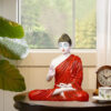 Meditation Big Buddha Showpiece for Home Decor (Red & White) Marble – 15 Inch