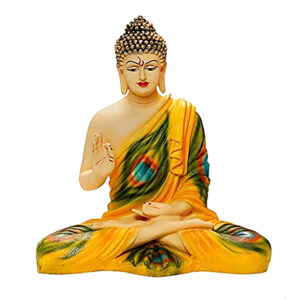 Be the first to review “Meditation Big Buddha Showpiece for Home Decor (Yellow Peacock Design) Polyresin – 15 Inch”
