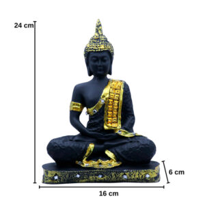 Meditation Buddha Showpiece for Home Decor (Black & Golden) Polyresin – 9.5 Inch