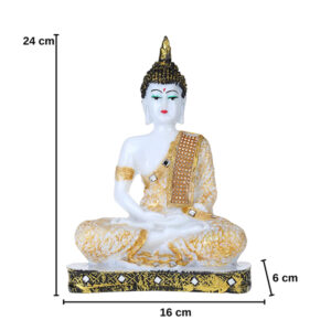Meditation Buddha Showpiece for Home Decor (Golden & White) Marble – 9.5 Inch