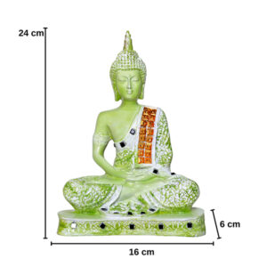 Meditation Buddha Showpiece for Home Decor (Green & White) Polyresin – 9.5 Inch