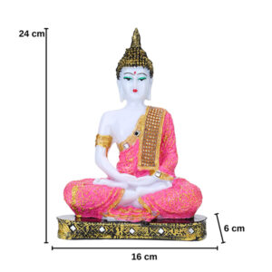 Meditation Buddha Showpiece for Home Decor (Pink & White) Marble – 9.5 Inch