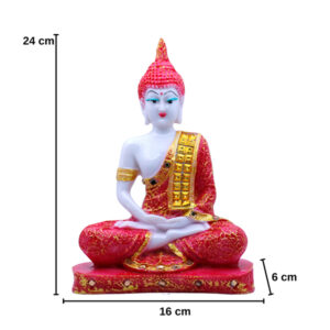Meditation Buddha Showpiece for Home Decor (Red & White) Polyresin – 9.5 Inch