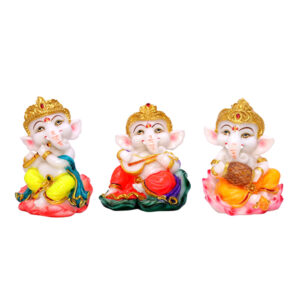 Musician Ganesha Idol Showpiece for Home Decor, Set of 3 (Multicolor) Marble – 4 Inch