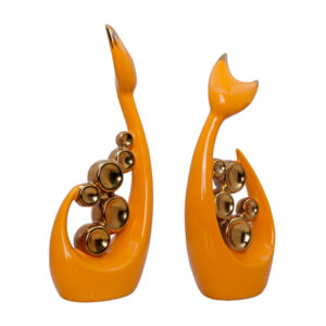 Bring a wave of style and creativity to your space with this striking Set of 2 Orange Abstract Fish Figurines. Featuring a contemporary design with smooth curves, golden spherical accents, and a vivid orange glaze, these sculptures effortlessly blend aquatic inspiration with artistic elegance.