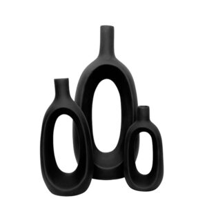 / Oval-Shaped Flower Vases for Home Decor, Set of 3 (Black) Polyresin – 9.5 Inch