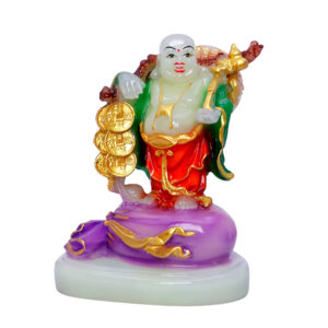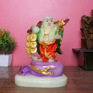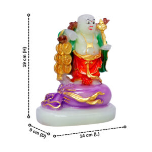 Invite abundance and success into your space with this exquisite radiant Buddha figurine. Depicting the Laughing Buddha holding a Ruyi staff and a stack of gold coins, this statue symbolizes wealth, power, and prosperity. The built-in light enhances its vibrant colors, making it a perfect spiritual decor piece for your home, office, or meditation space.
