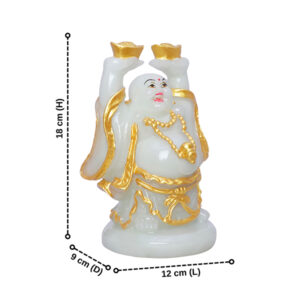 This stunning radiant light Buddha figurine symbolizes prosperity and good fortune. Featuring two raised gold ingots, intricate gold accents, and a built-in LED glow, it enhances positivity in any space. Perfect for home decor, spiritual ambiance, or gifting.