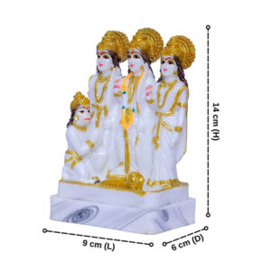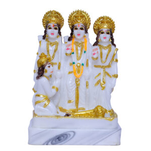 • This exquisite piece captures the divine essence of Ram Darbar, featuring the revered figures of Ram, Laxman, Sita, and Hanuman meticulously crafted from high-quality marble.