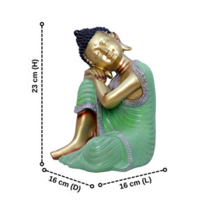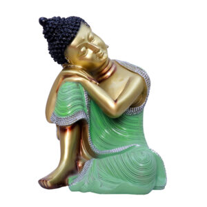 Create a peaceful and spiritual ambiance in your space with this beautifully crafted Resting Buddha Statue. Featuring a tranquil Buddha in a meditative resting pose, this sculpture radiates calmness and positivity. Designed with a golden face and a soothing green robe accented with intricate silver detailing, this piece adds a touch of elegance to any home, office, or meditation space. Perfect for enhancing your spiritual decor or gifting to loved ones who appreciate mindfulness and serenity.