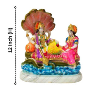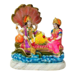 Bring divine blessings and elegance to your home with this beautifully crafted Sheshnag Vishnu-Lakshmi idol. This intricately designed marble statue depicts Lord Vishnu reclining on the sacred serpent Sheshnag, with Goddess Lakshmi seated beside him. The idol is adorned with vibrant hand-painted details and gold accents, making it a perfect addition to your puja room, home decor, or a thoughtful gift for religious occasions.