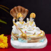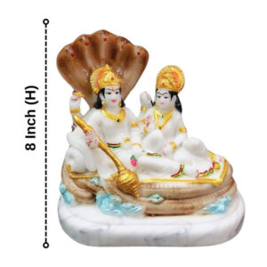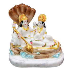 Bring divine blessings and elegance to your home with this beautifully crafted Sheshnag Vishnu-Lakshmi idol. This intricately designed marble statue depicts Lord Vishnu reclining on the sacred serpent Sheshnag, with Goddess Lakshmi seated beside him. The idol is adorned with vibrant hand-painted details and gold accents, making it a perfect addition to your puja room, home decor, or as a thoughtful gift for religious occasions.