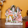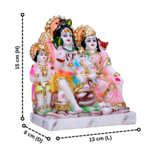 The Shiv Parivar idol showpiece from GW Creations is a breathtaking representation of divine unity, grace, and spiritual strength, meticulously crafted from high-quality marble. Standing at an impressive 7 inches, this exquisite piece is adorned with golden foil work, adding a touch of opulence and elegance to its appearance. Ideal for enhancing the spiritual ambiance of any home or office, the idol beautifully captures the essence of Lord Shiva, Goddess Parvati, and their children, Ganesha and Kartikeya, symbolizing harmony and familial devotion. The intricate detailing and glossy finish highlight the exceptional craftsmanship of skilled artisans, making it a cherished centerpiece that embodies both beauty and spiritual significance.