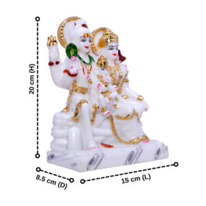The Shiv Parivar idol showpiece from GW Creations is a breathtaking representation of divine unity, grace, and spiritual strength, meticulously crafted from high-quality marble. Standing at an impressive 9 inches, this exquisite piece is adorned with golden foil work, adding a touch of opulence and elegance to its appearance. Ideal for enhancing the spiritual ambiance of any home or office, the idol beautifully captures the essence of Lord Shiva, Goddess Parvati, and their children, Ganesha, symbolizing harmony and familial devotion. The intricate detailing and glossy finish highlight the exceptional craftsmanship of skilled artisans, making it a cherished centerpiece that embodies both beauty and spiritual significance.