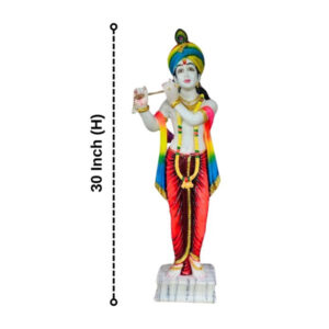 The Krishna idol showpiece from GW Creations is an exquisite masterpiece that embodies divine charm, grace, and spiritual wisdom, meticulously crafted from high-quality marble. Standing majestically at 30 inches, this stunning piece is adorned with a luxurious glossy finish that enhances its regal appearance, making it a perfect addition to home and office spaces. The idol beautifully captures the serene and enchanting essence of Krishna, known for his divine plays and profound teachings, making it a cherished centerpiece that inspires devotion and tranquility. The intricate detailing and polished finish reflect the exceptional craftsmanship of skilled artisans, ensuring it stands out as a distinguished addition to any environment.