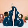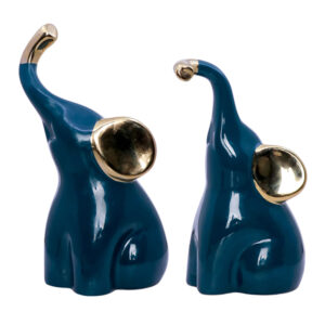 Bring a touch of charm and sophistication to your décor with this Set of 2 Teal Elephant Figurines. Featuring a rich teal glaze and elegant gold accents on the ears and trunks, these figurines exude both playfulness and style.