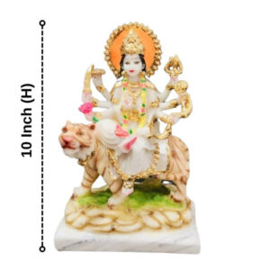 This beautifully crafted Durga Mata idol brings divine strength and protection into your home. Featuring Goddess Durga seated on her majestic tiger, this intricately designed marble murti is ideal for home temples, office desks, and festive décor. Worshipped as the symbol of power, courage, and victory, Goddess Durga blesses devotees with prosperity and removes negativity.