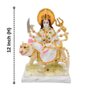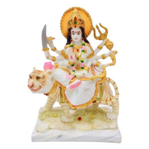 This beautifully crafted Durga Mata idol brings divine strength and protection into your home. Featuring Goddess Durga seated on her majestic tiger, this intricately designed marble murti is ideal for home temples, office desks, and festive décor. Worshipped as the symbol of power, courage, and victory, Goddess Durga blesses devotees with prosperity and removes negativity.