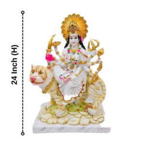 This beautifully crafted Durga Mata idol brings divine strength and protection into your home. Featuring Goddess Durga seated on her majestic tiger, this intricately designed marble murti is ideal for home temples, office desks, and festive décor. Worshipped as the symbol of power, courage, and victory, Goddess Durga blesses devotees with prosperity and removes negativity.