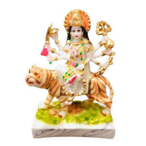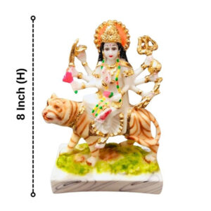 This beautifully crafted Durga Mata idol brings divine strength and protection into your home. Featuring Goddess Durga seated on her majestic tiger, this intricately designed marble murti is ideal for home temples, office desks, and festive décor. Worshipped as the symbol of power, courage, and victory, Goddess Durga blesses devotees with prosperity and removes negativity.