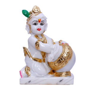 The Makhan Chor idol showpiece from GW Creations is a delightful embodiment of youthful playfulness and divine charm, meticulously crafted from high-quality marble and adorned with luxurious golden foil work. Standing gracefully at 7 inches, this exquisite piece captures the joyful essence of Lord Krishna as the beloved butter thief, symbolizing joy and mischievous innocence. The glossy finish enhances its elegant appearance, making it a perfect addition to both home and office spaces. The idol’s intricate detailing reflects the exceptional craftsmanship of skilled artisans, ensuring it becomes a cherished centerpiece that radiates spiritual grace and playful energy.