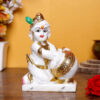 This charming showpiece not only enhances your décor with its artistic beauty but also serves as a source of joy and inspiration, celebrating the divine playfulness and auspicious presence of Lord Krishna in a beautifully crafted form.