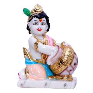 This charming showpiece not only enhances your décor with its artistic beauty but also serves as a source of joy and inspiration, celebrating the divine playfulness and auspicious presence of Lord Krishna in a beautifully crafted form.