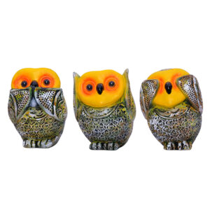 Enhance your home or office decor with this beautifully crafted “Three Wise Owls” figurine set inspired by the ancient proverb “See No Evil, Hear No Evil, Speak No Evil.” These adorable and intricately detailed owl statues symbolize wisdom, mindfulness, and positivity. Made from premium-quality polyresin, this set is a perfect addition to living rooms, offices, bookshelves, or as a thoughtful gift.