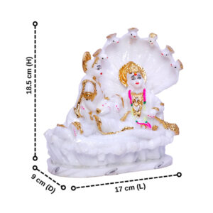The Lord Vishnu & Goddess Laxmi with Sheshnag idol from GW Creations is a magnificent portrayal of divine harmony, prosperity, and protection, meticulously crafted from high-quality marble. Standing at an elegant 9 inches, this exquisite piece is embellished with luxurious golden foil work, adding an aura of opulence and grace to any home or office space. The idol beautifully captures the serene and benevolent essence of Lord Vishnu and Goddess Laxmi, accompanied by the protective presence of Sheshnag, making it a cherished centerpiece that inspires peace and abundance. The intricate detailing and glossy finish reflect the exceptional craftsmanship of skilled artisans, ensuring it stands out as a distinguished addition to any environment.
