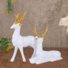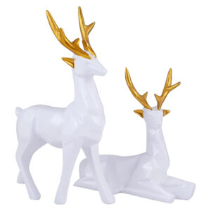 Elevate your living space with minimalist elegance and symbolic grace using this 8-inch White Deer Couple Figurine. Crafted from premium resin and finished in a clean, matte white tone with contrasting golden antlers, this sculpture beautifully balances simplicity and sophistication. The geometric design adds a modern twist to the natural inspiration behind this piece.