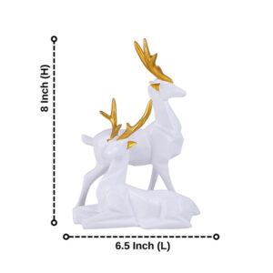 The showpiece features a serene deer duo—one standing tall with poise and the other resting peacefully—representing unity, balance, and peace. Measuring 6.5 inches in length and 8 inches in height, this compact yet striking decor item fits effortlessly on center tables, mantels, bookshelves, office desks, or bedside tables.