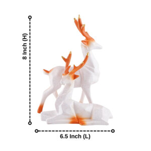 Bring a graceful charm to your home with this stunning White Deer Couple Showpiece. Standing 8 inches tall, it showcases a modern aesthetic with a snowy white body and contrasting orange-gold antlers. Perfect for minimalist interiors or as a stylish gift, this resin-crafted piece adds elegance and warmth to any setting.