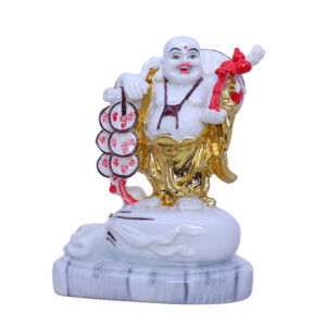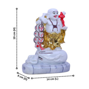 Enhance the positive energy in your space with this exquisite White & Gold Laughing Buddha statue. This beautifully designed Feng Shui idol features a sack of coins and a red ribbon, symbolizing wealth, good fortune, and success. Crafted from high-quality resin with a glossy marble-like finish, this statue serves as a powerful symbol of prosperity and happiness. Ideal for home, office, or as a thoughtful gift for special occasions.
