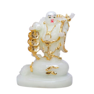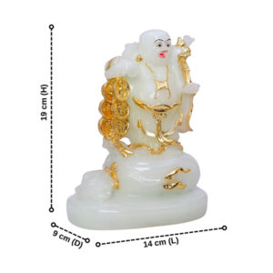 Invite prosperity and happiness into your space with this beautifully crafted Laughing Buddha statue. Featuring a radiant white finish with gold accents, this figurine symbolizes fortune and success. The detailed design includes wealth symbols such as gold coins and a sack of treasures, making it a perfect addition to any home, office, or meditation space. The light enhances its charm, creating a peaceful ambiance.